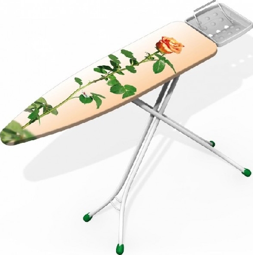Jednoduché a lehké žehlící prkno tvoří kovový podstavec, který je opatřen bílou barvou ( stabilní trubky podstavce ? 22 mm ) a paropropustná deska s kovovým odkladačem žehličky. Odkladač je vybaven držákem žehličky ve svislé poloze, potah ze 100 % bavlny s výplní. Plynule nastavitelná výška. Vyobrazený motiv potahu je ilustrační.