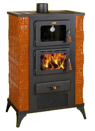 Výkonná krbová kamna s pečící troubou. Jsou vyložena šamotovými deskami, součástí je litinový rošt. Přívod primárního vzduchu je regulovatelný přes popelník, sekundární vzduch oplachuje sklo a nelze jej regulovat. Materiál: 3 a 4 mm plech. Samovypalovací černá barva