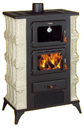 Výkonná krbová kamna s pečící troubou. Jsou vyložena šamotovými deskami, součástí je litinový rošt. Přívod primárního vzduchu je regulovatelný přes popelník, sekundární vzduch oplachuje sklo a nelze jej regulovat. Materiál: 3 a 4 mm plech. Samovypalovací černá barva