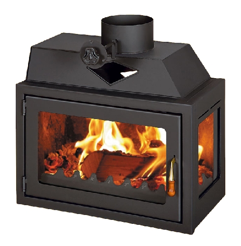 Výkonná krbová vložka s pravým bočním prosklením. Je vyložena šamotovými deskami, součástí je litinový rošt. Přívod primárního vzduchu je regulovatelný přes popelník, sekundární vzduch oplachuje sklo a nelze jej regulovat. Terciální vzduch ani přívod vzduchu z exteriéru u krbové vložky není. Materiál: 3 a 4 mm plech. Samovypalovací černá barva