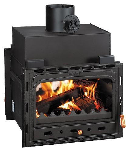 Výkonná krbová vložka s litinovými dvířky. Je vyložena šamotovými deskami, součástí je litinový rošt. Přívod primárního vzduchu je regulovatelný přes popelník, sekundární vzduch oplachuje sklo a nelze jej regulovat. Terciální vzduch ani přívod vzduchu z exteriéru u krbové vložky není. Materiál: 3 a 4 mm plech. Samovypalovací černá barva