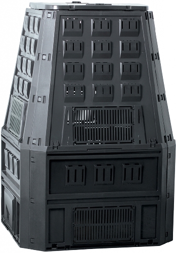 Plastový kompostér o objemu 850l Evogreen v černé barvě.