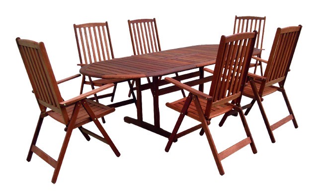 Luxusní masivní stolová sestava MERANTI PARIS SET 6-ti polohovatelných křesel a stolu z exotického, velice trvanlivého a tvrdého dřeva meranti. Určeno do exteriérů, interiérů a pergolových prostor.